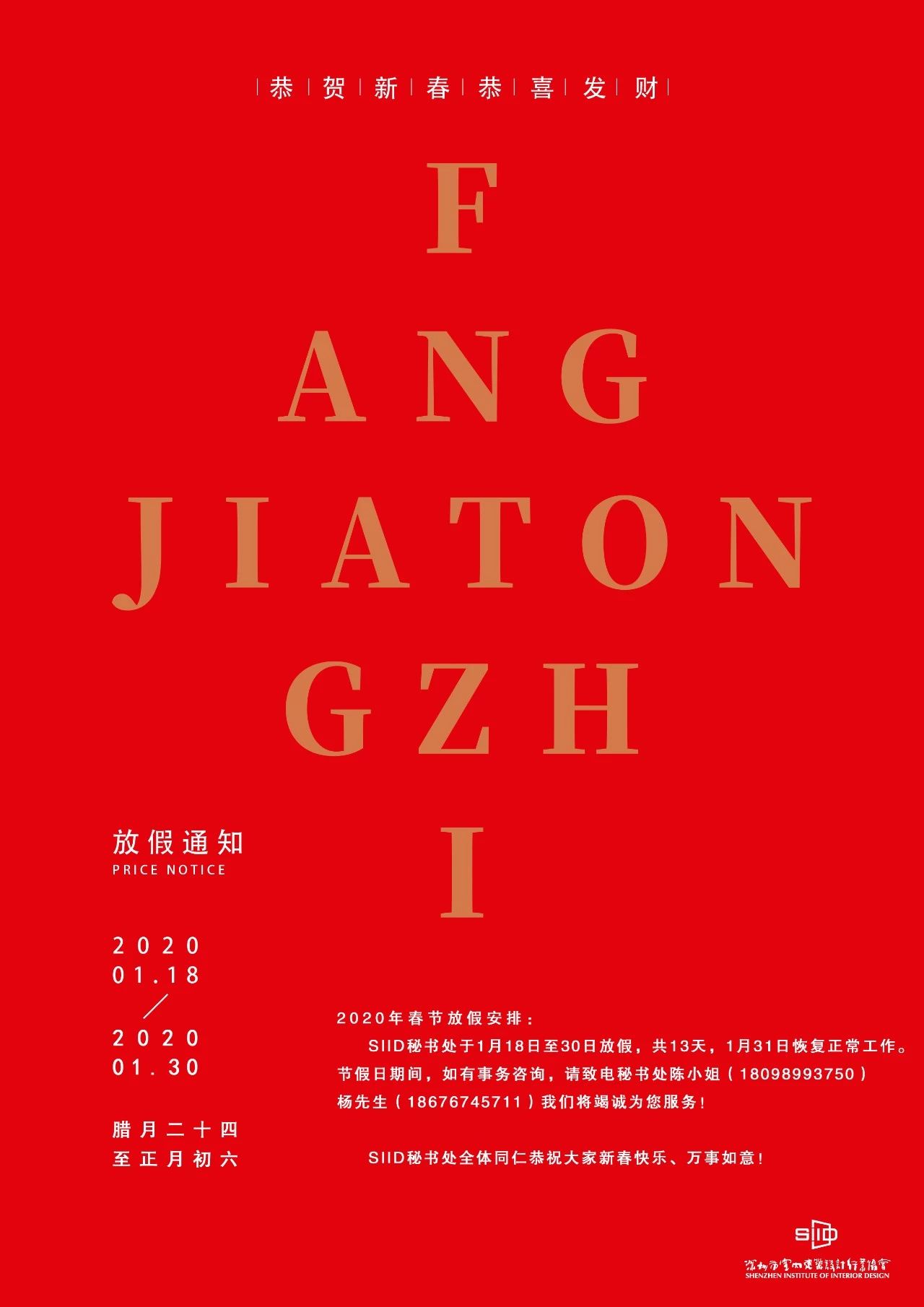 2020年SIID春节放假通知